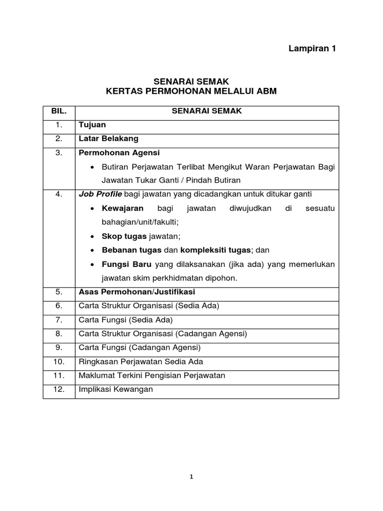 Permohonan Perjawatan Contoh Umum